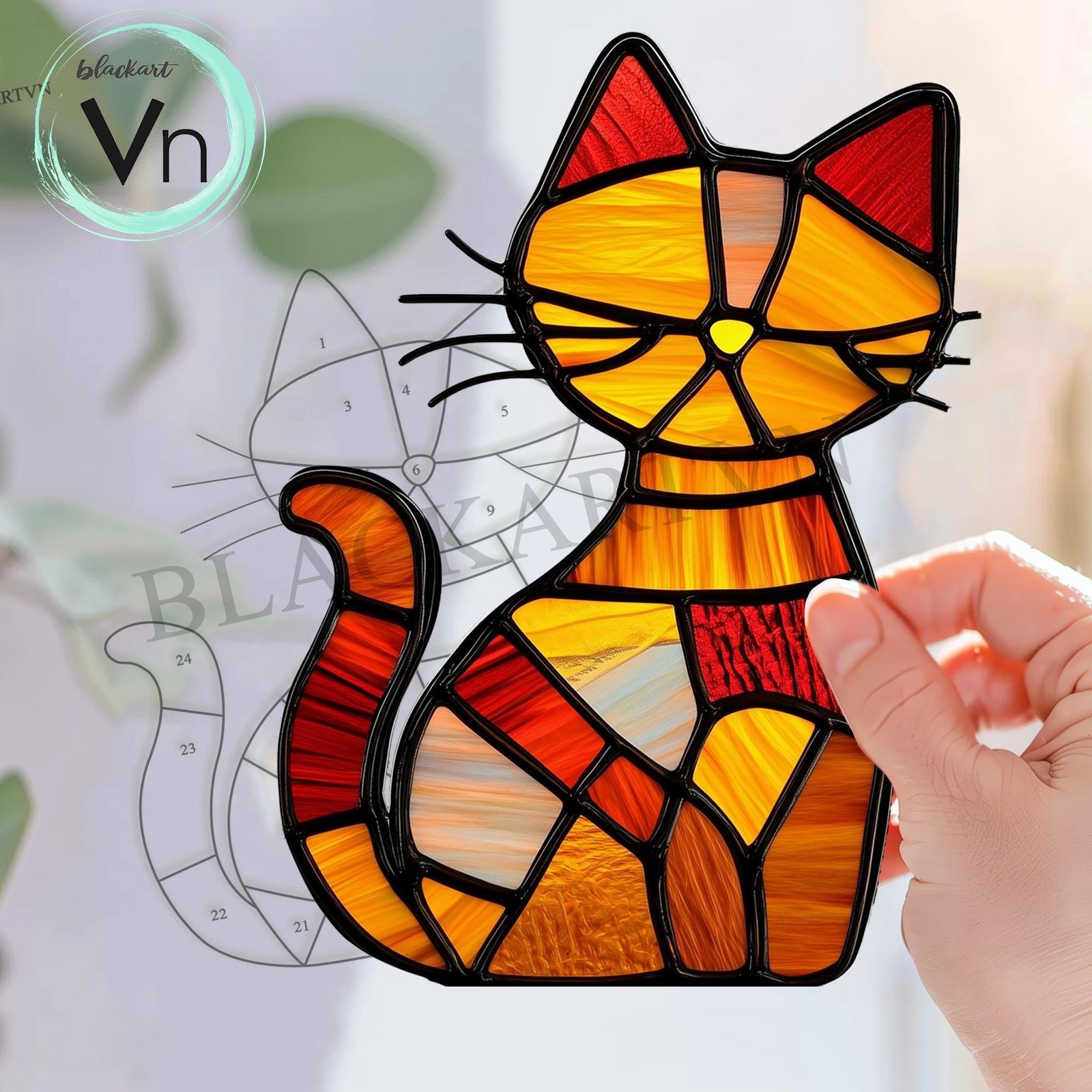 Digital Download Cat Stained Glass Pattern Animal Stained Glass Pattern Digital Download Pattern DIY Suncatcher for Home Decor