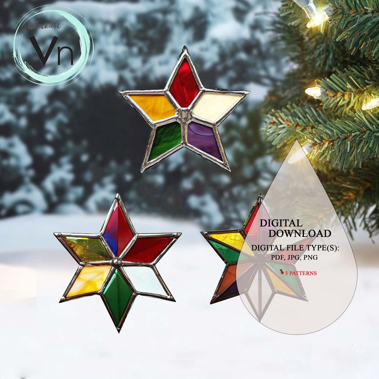 Digital Download Christmas star T02 Stained Glass , Modern Suncatcher, Diy Stained Glass
