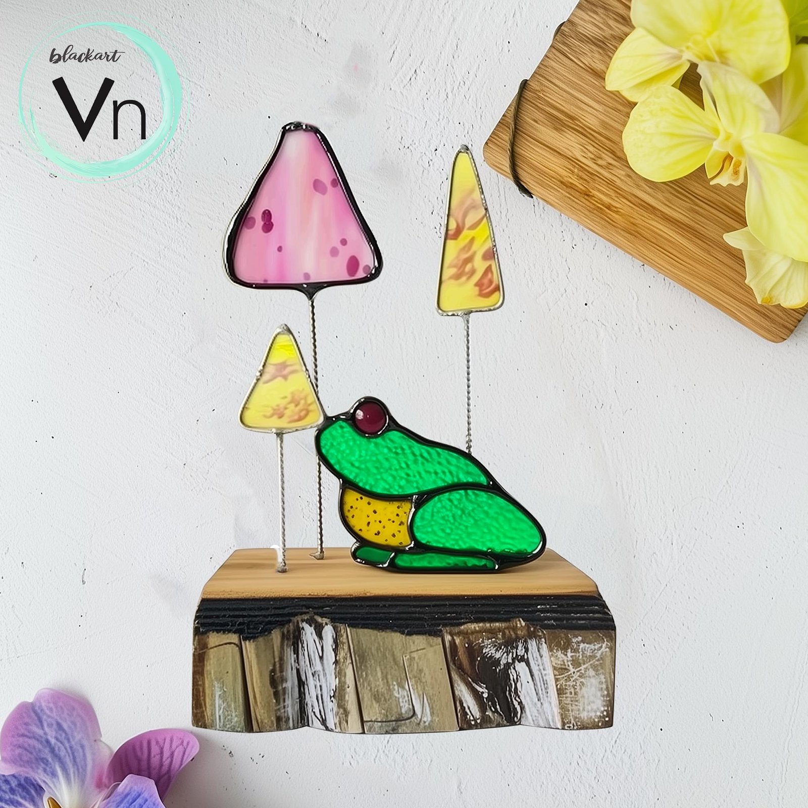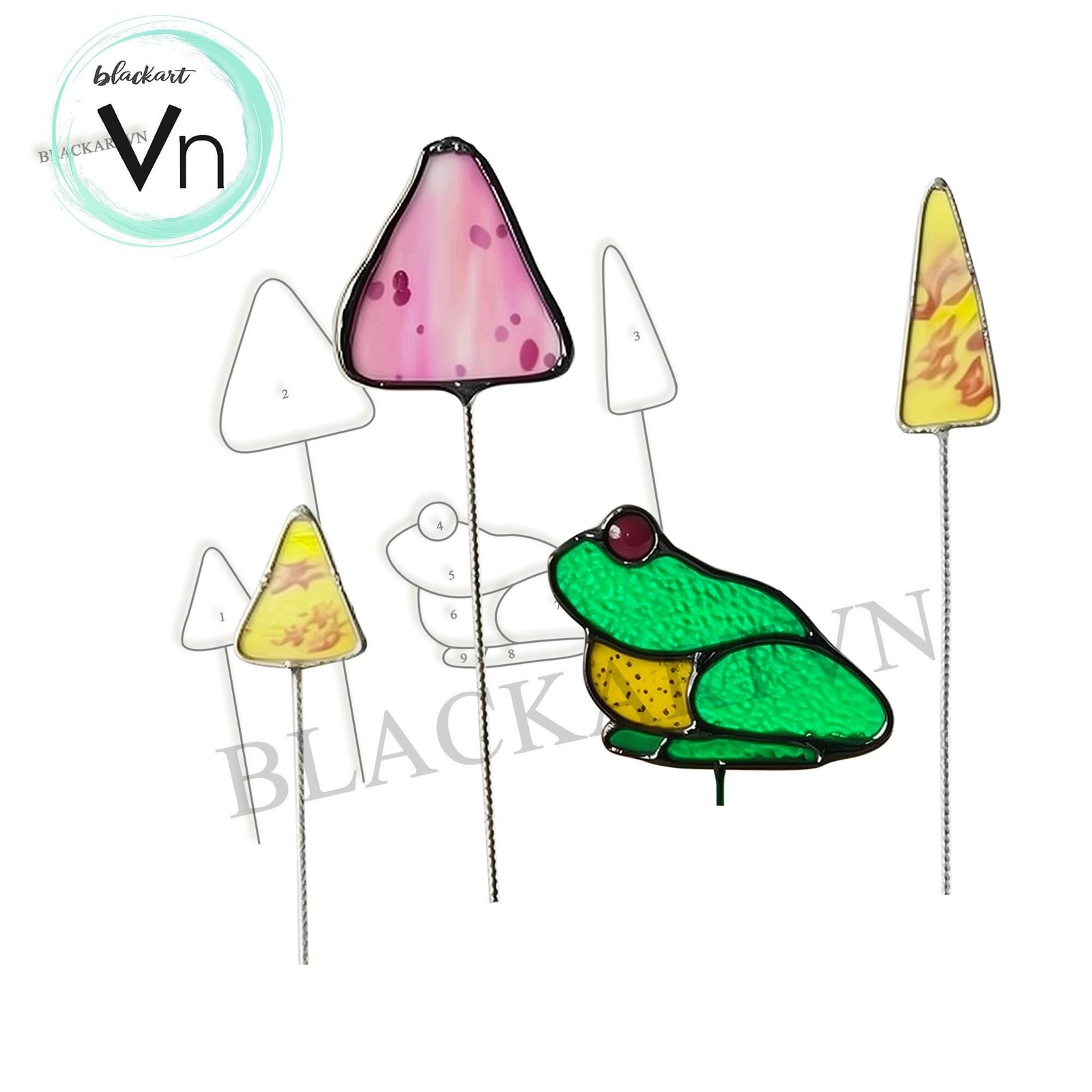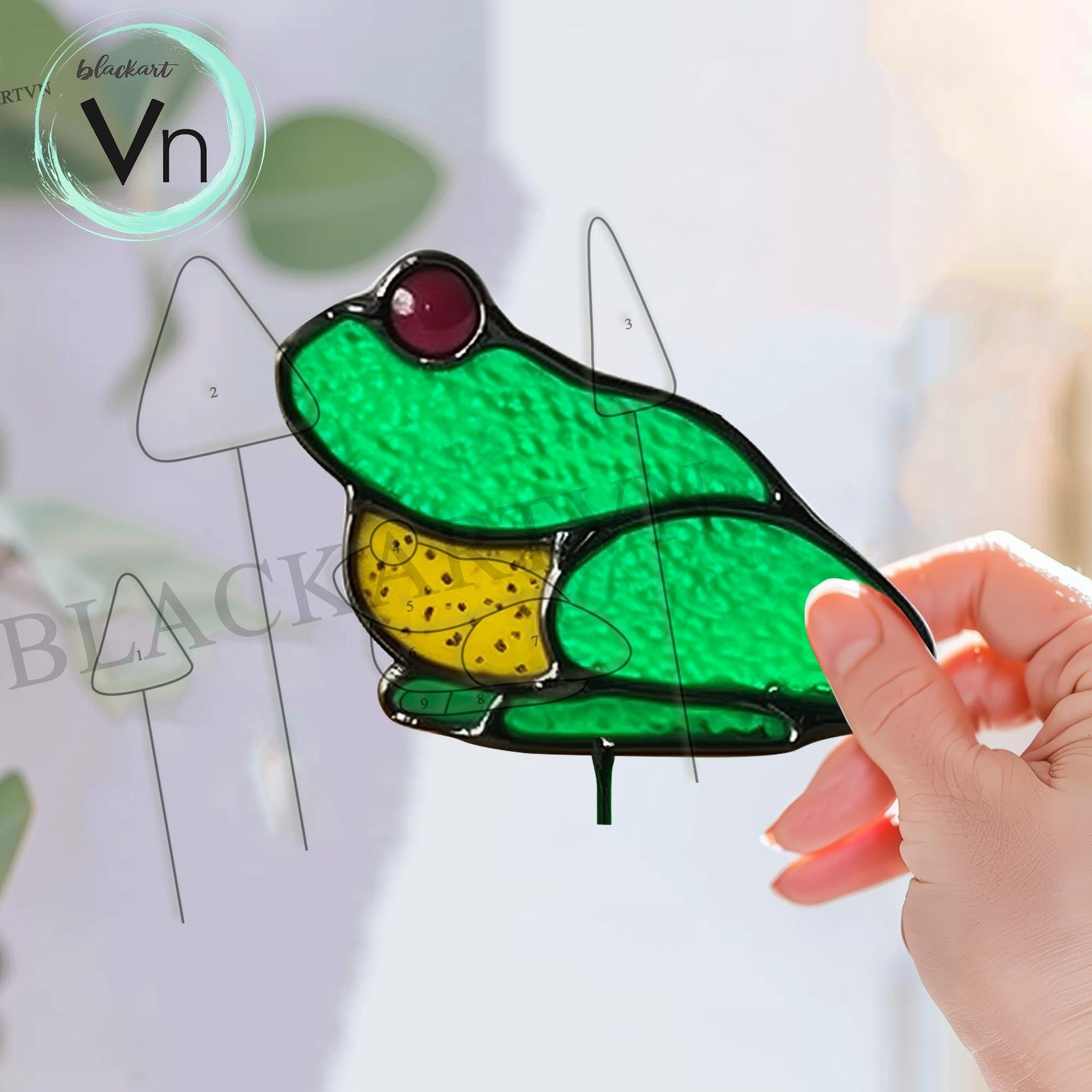 Digital Download Frog By the Lake – Frog and Mushroom Stained Glass Pattern, Modern Suncatcher, Diy Stained Glass