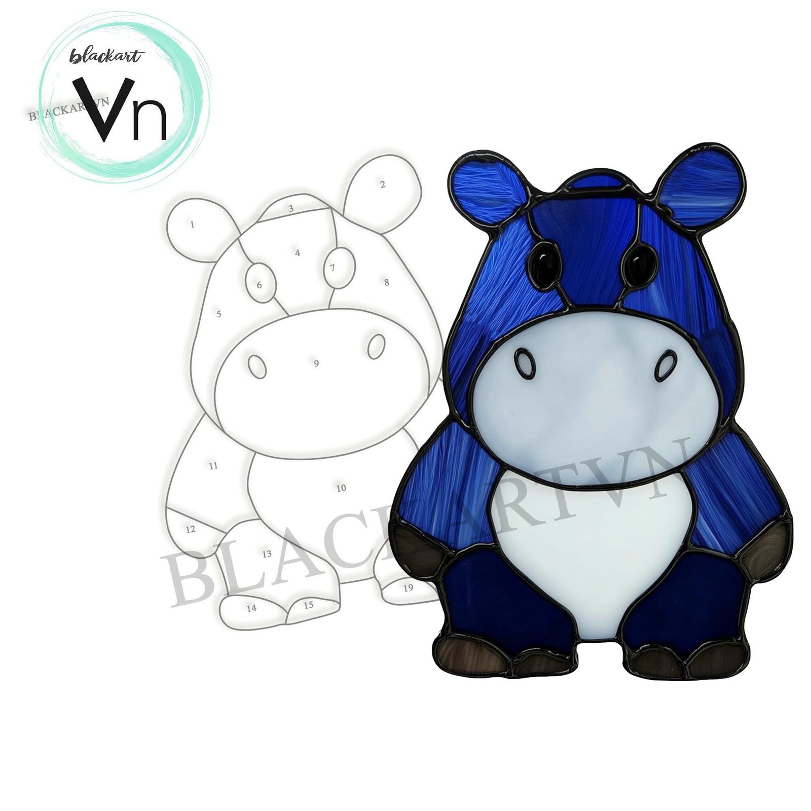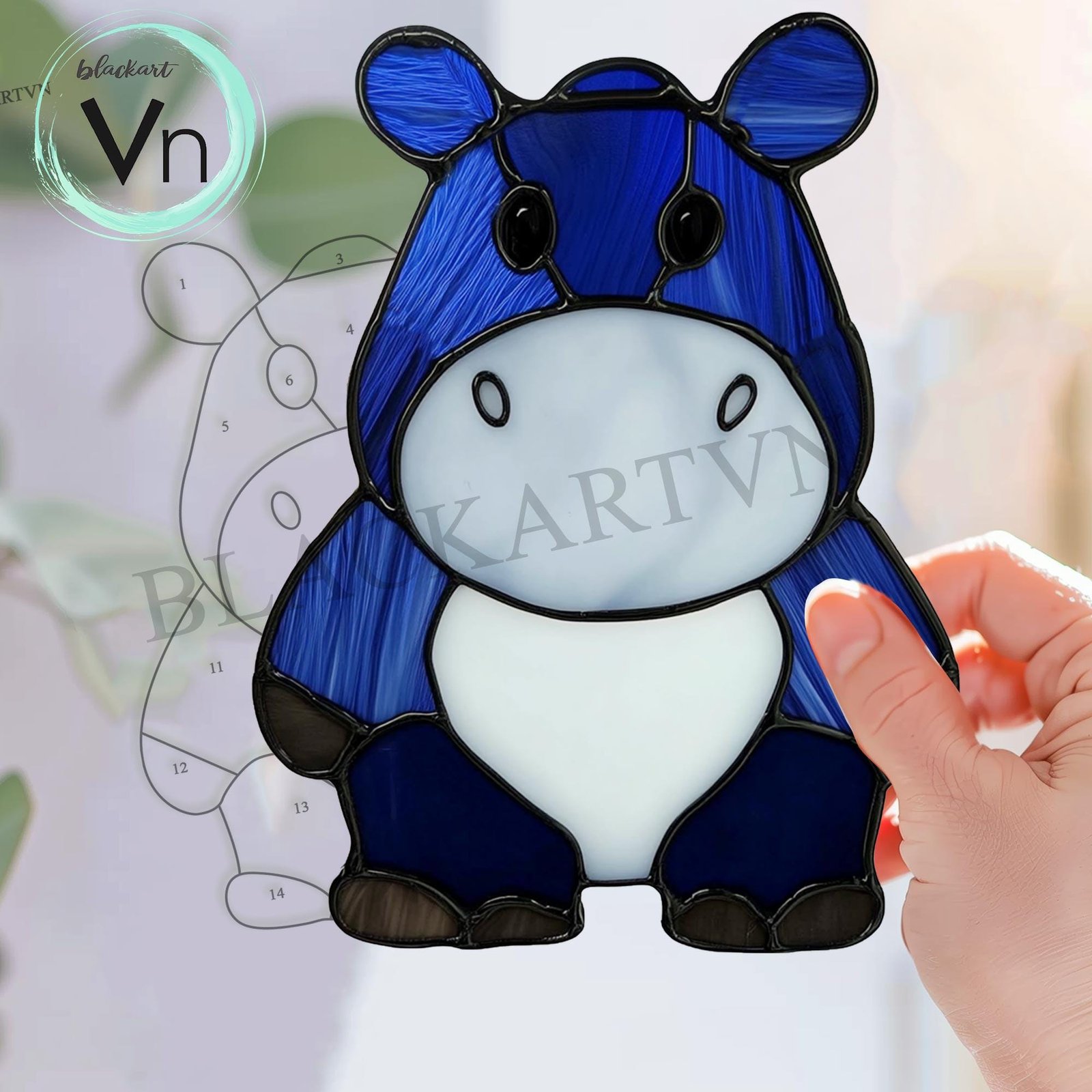 Digital Download Hippo T05,Stained Glass Pattern,Modern Suncatcher,Diy Stained Glass,Easy art Hobby License Beginner to Intermediate