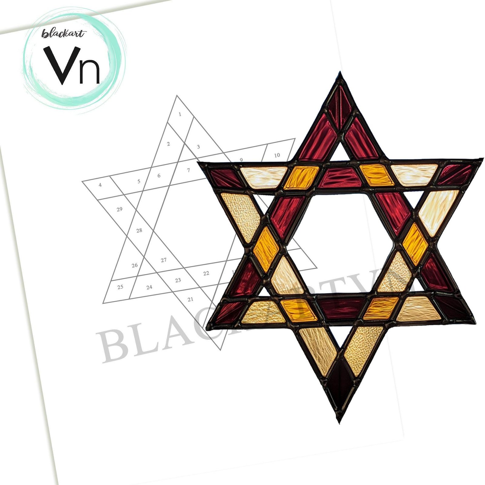 Be the first to review “Digital Download Interfaith Tree Topper, Stained Glass Star of David T02, Modern Suncatcher, Diy Stained Glass” Cancel reply