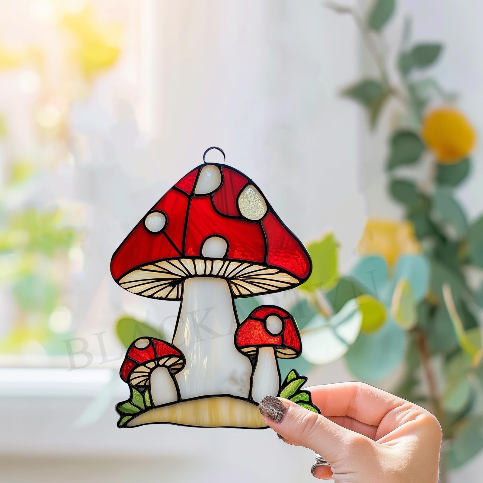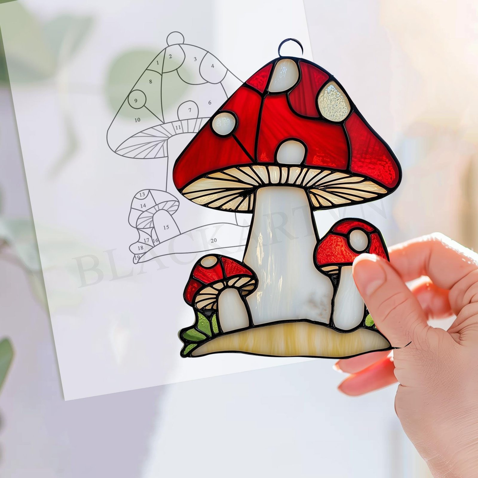 Digital Download Mushroom T06 Stained Glass Pattern, Modern Suncatcher, Diy Stained Glass