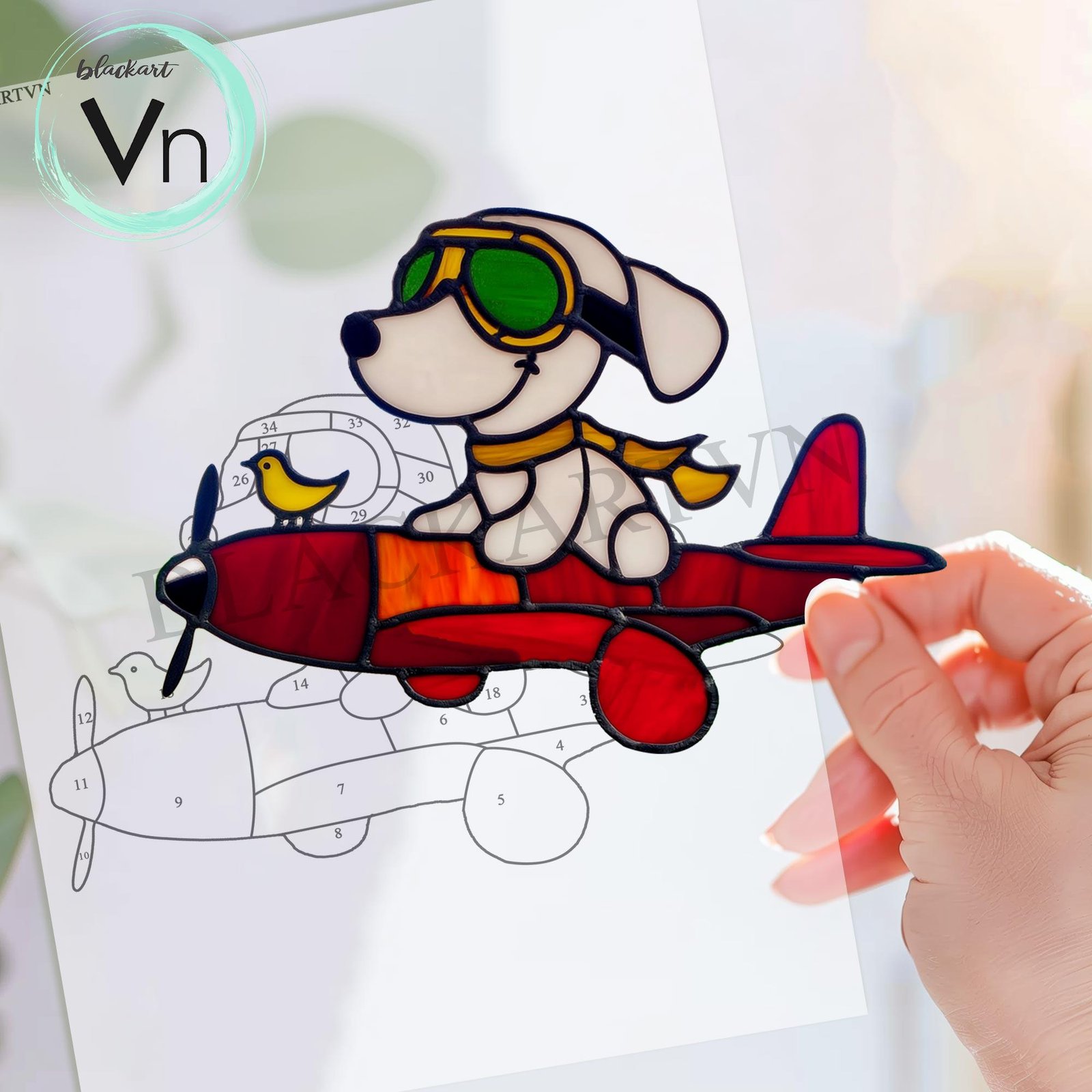 Digital Download pilot dog T01 Stained Glass Pattern, Modern Suncatcher, Diy Stained Glass