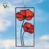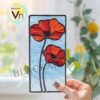 Digital Download Red Poppy Stained Glass Suncatcher Window Hanging Decor, Modern Suncatcher, Diy Stained Glass
