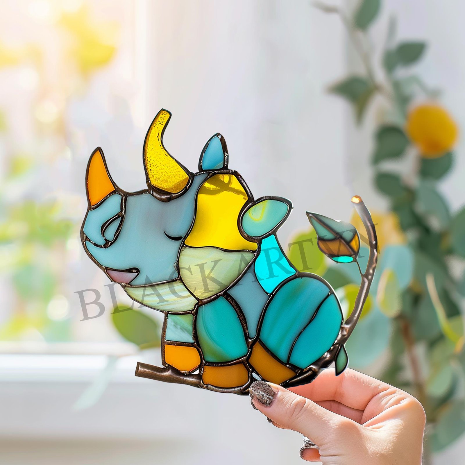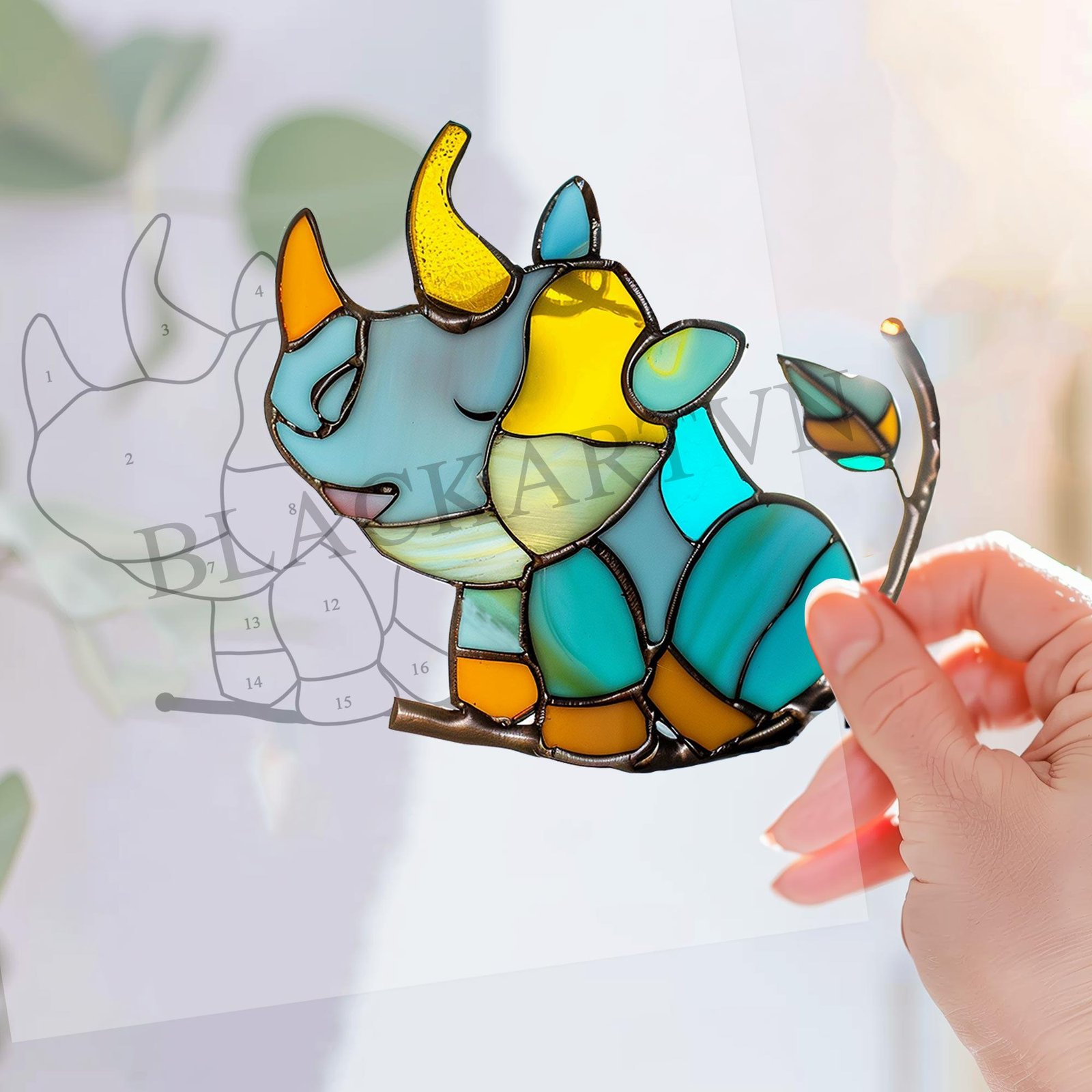 Digital Download Rhino-D01,Stained Glass Pattern,Modern Suncatcher,Diy Stained Glass,Easy art Hobby License Beginner to Intermediate