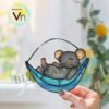 Digital Download Stained glass ,Suncatcher Mouse in Hammock T01, Modern Suncatcher, Diy Stained Glass
