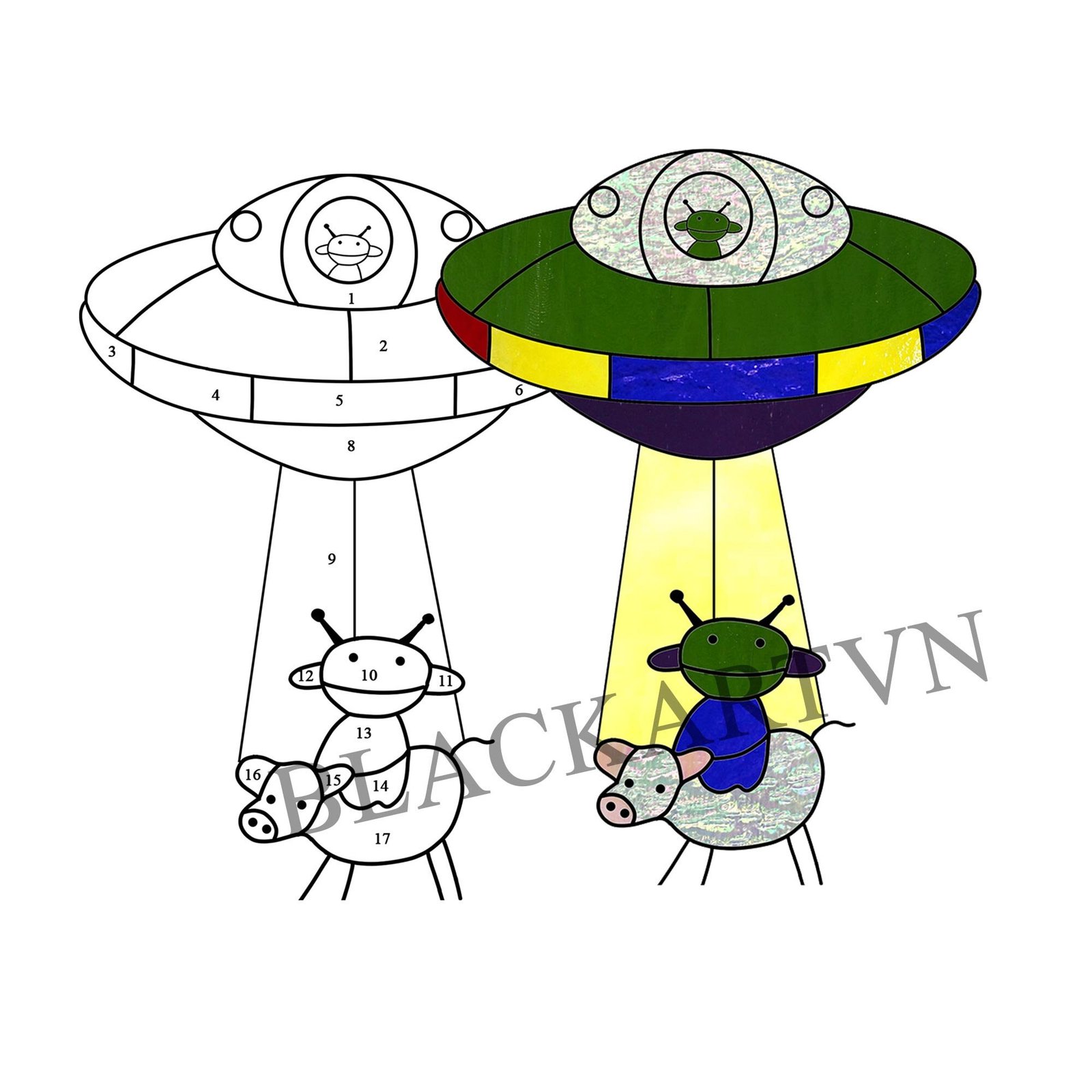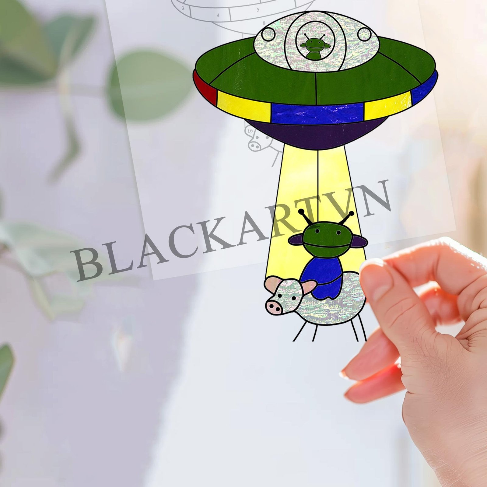 Be the first to review “Digital Download Suncatcher UF0 T01 , UFO Stained Glass Kidnapping a Cow Window Wall Decoration” Cancel reply