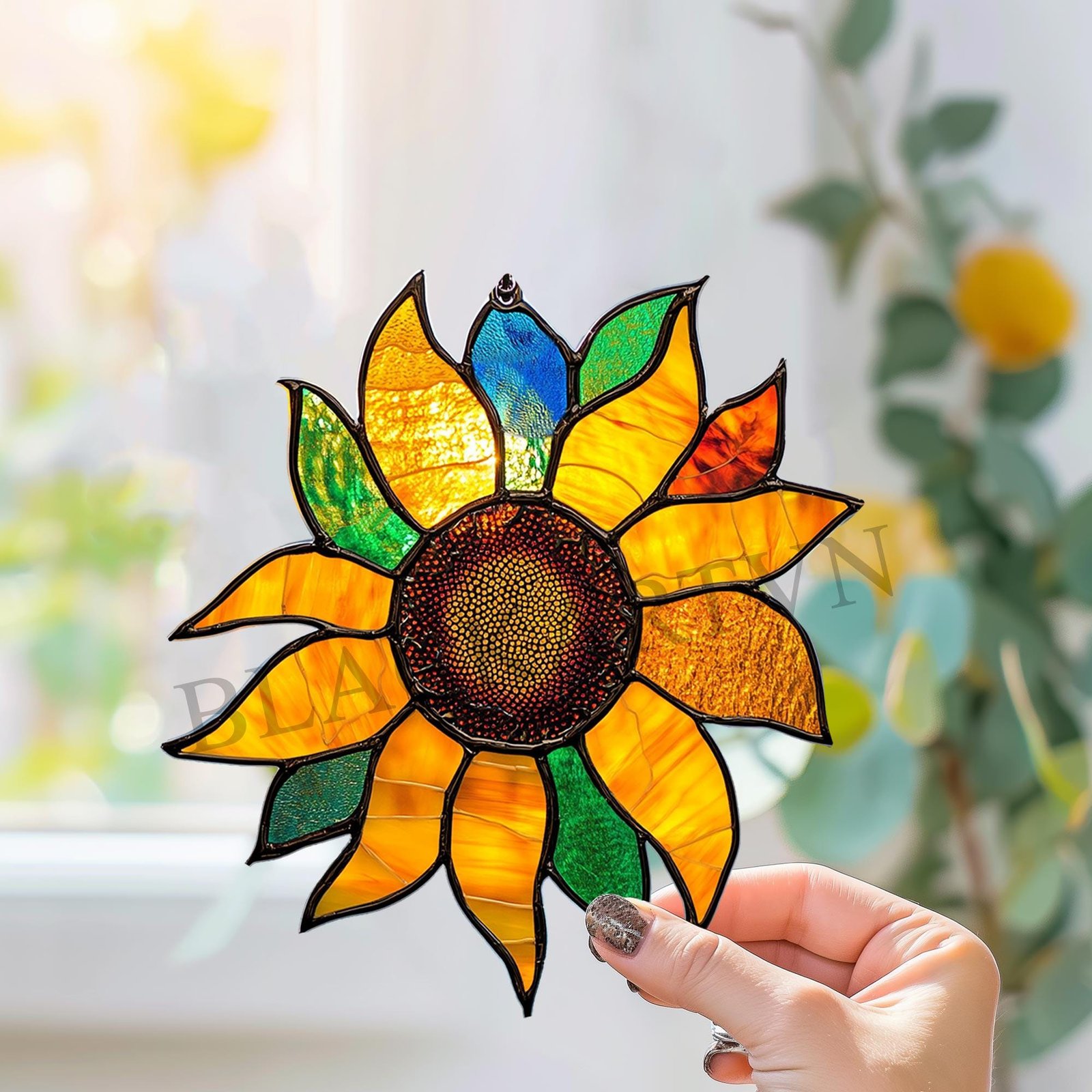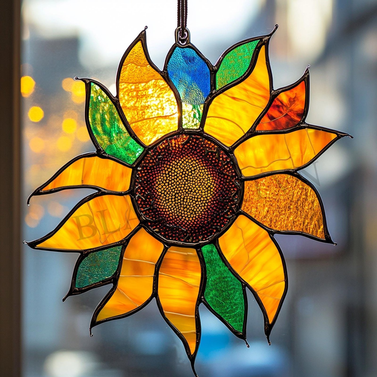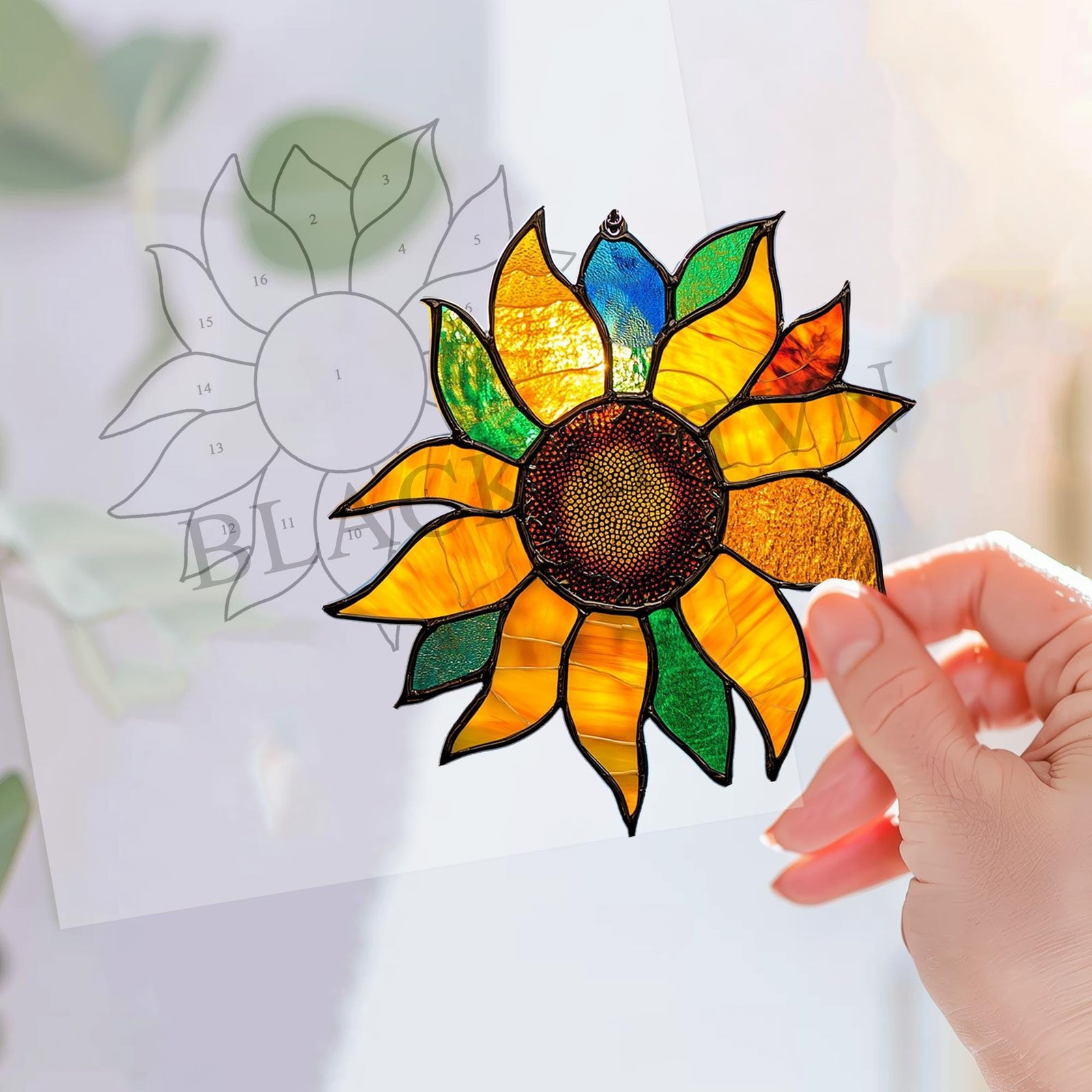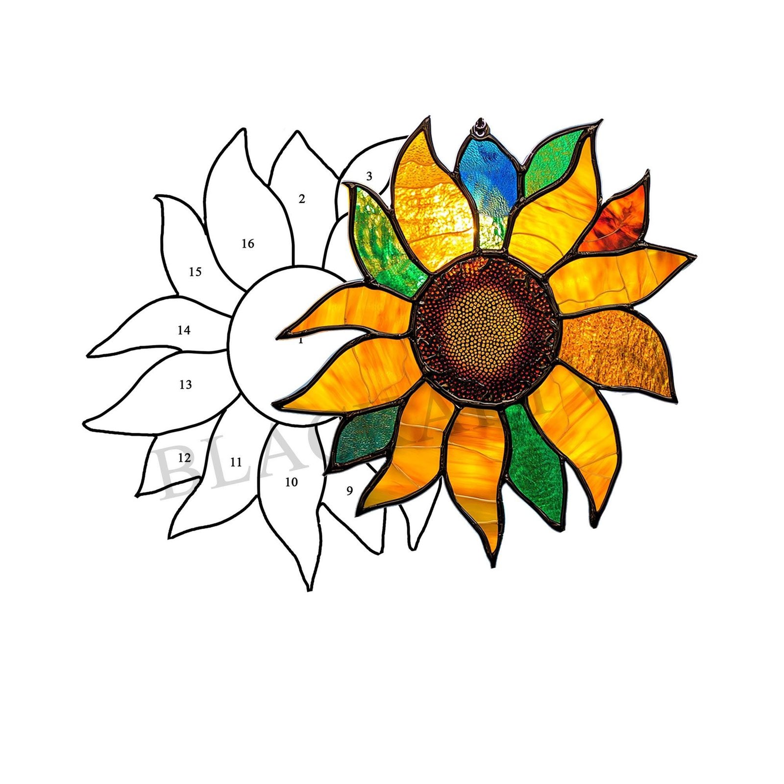 Digital Download sunflower D01 Stained Glass Pattern, Modern Suncatcher, Diy Stained Glass