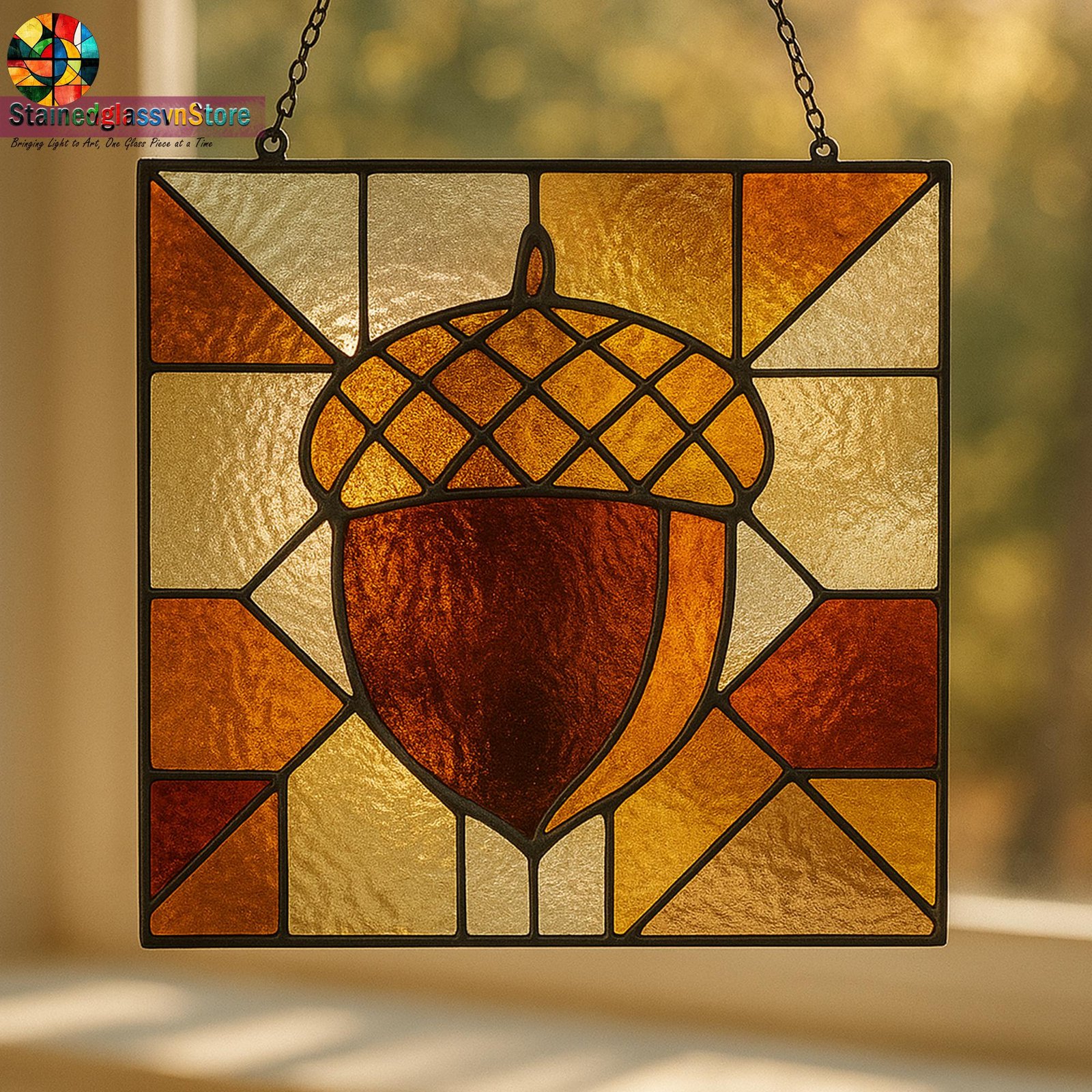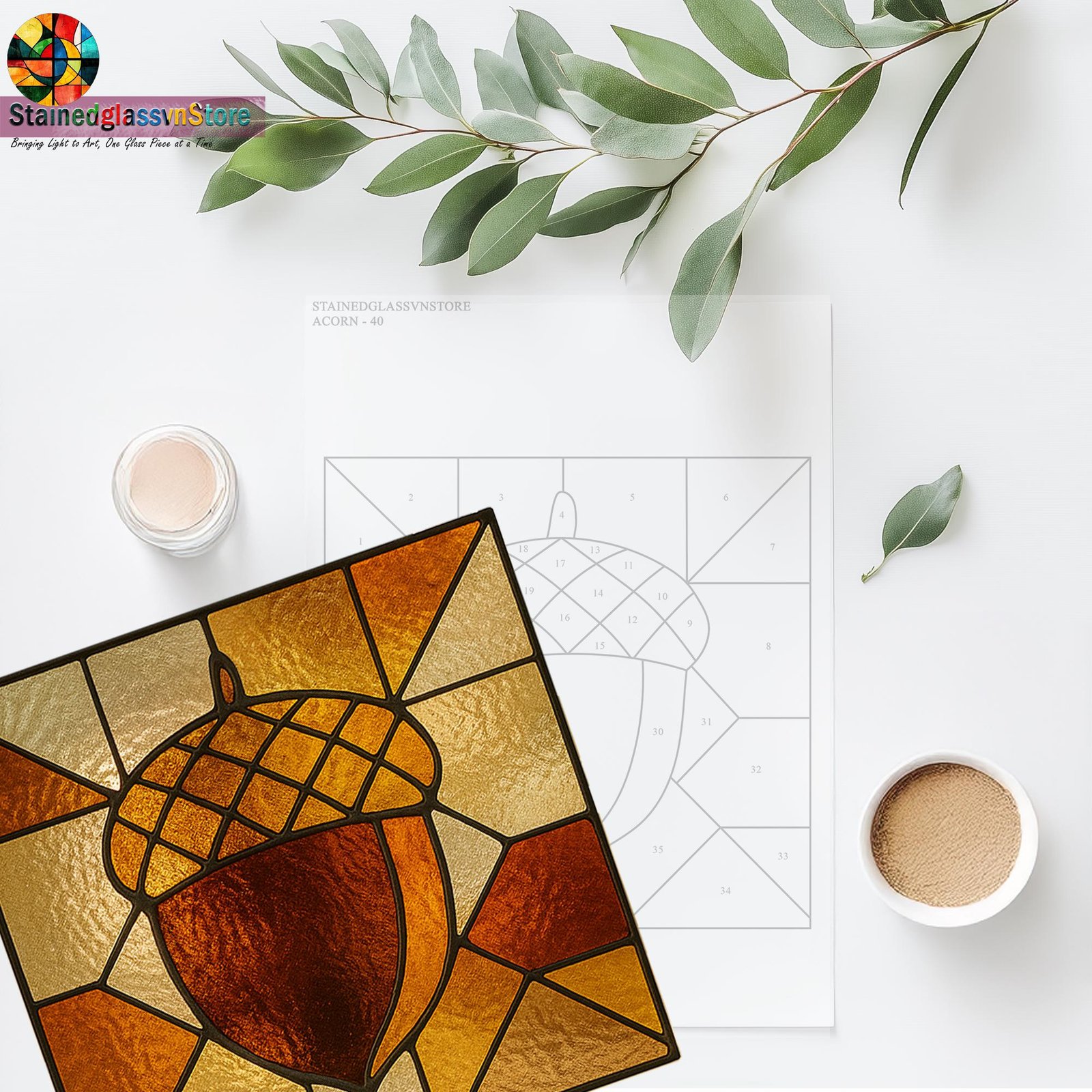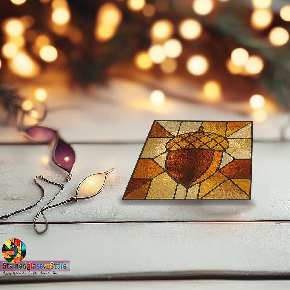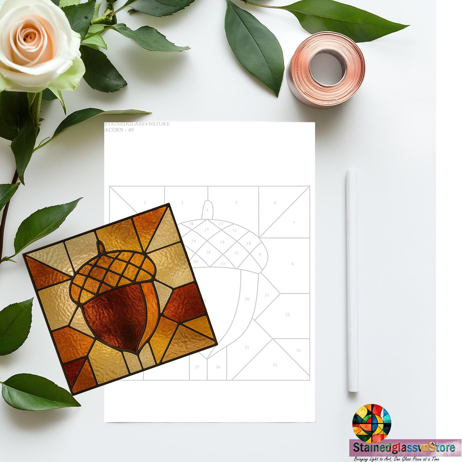 Digital file Acorn stained glass Stained Glass Panel – Home Decor Pattern, Calla daisy Flowers Modern Suncatcher, Diy