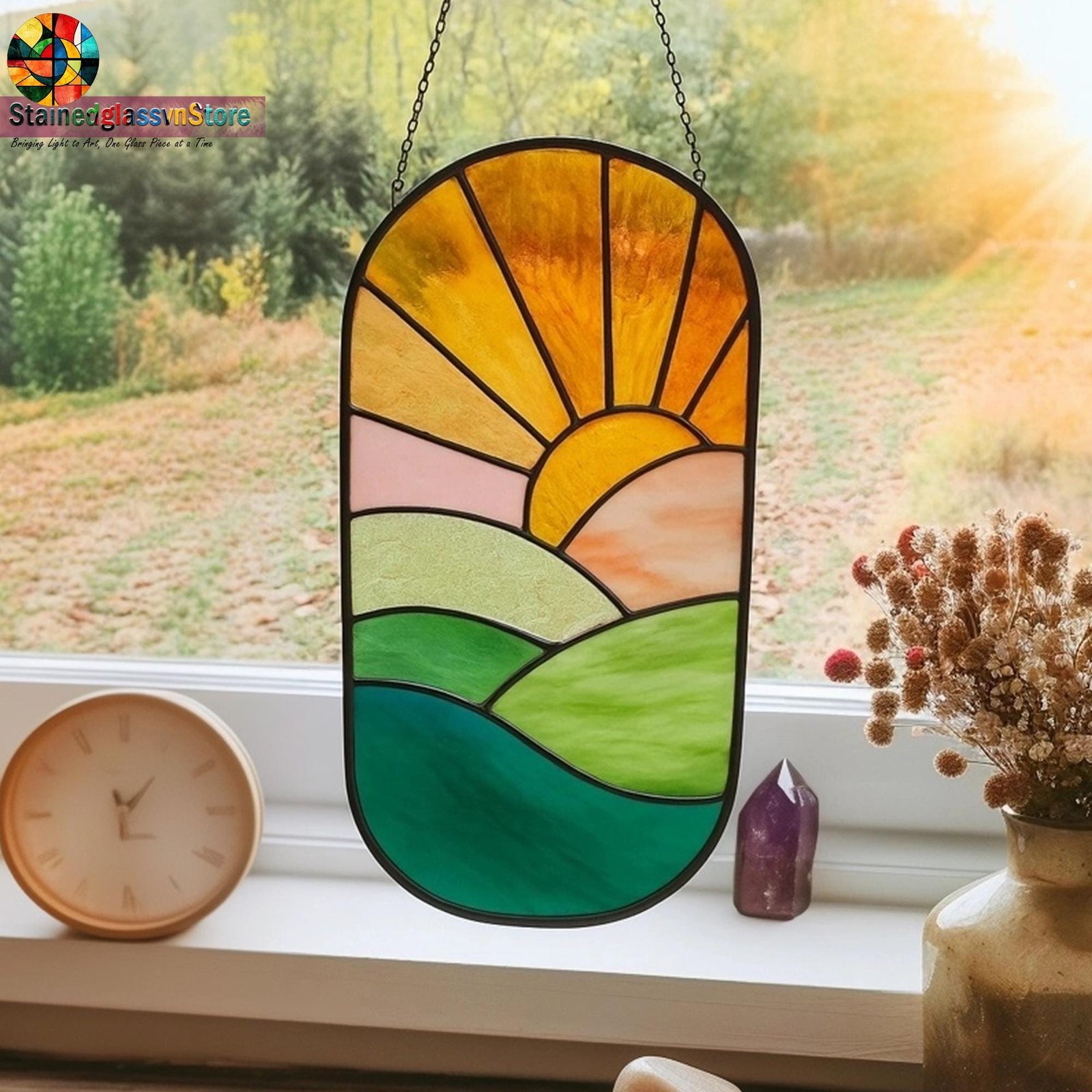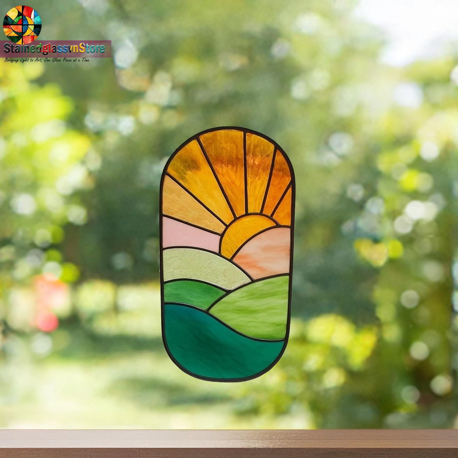Digital file Sunset stained glass Leaves Stained Glass Pattern, Calla daisy Flowers Modern Suncatcher, Diy Stained Glass