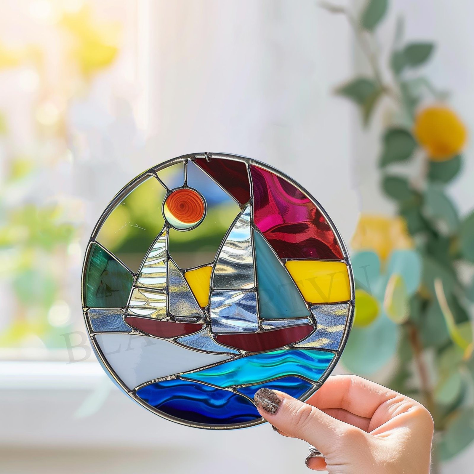 DigitalSailboat Suncatcher T01 Stained glass Home Decor Window Decor Art High End Living Father’s Day